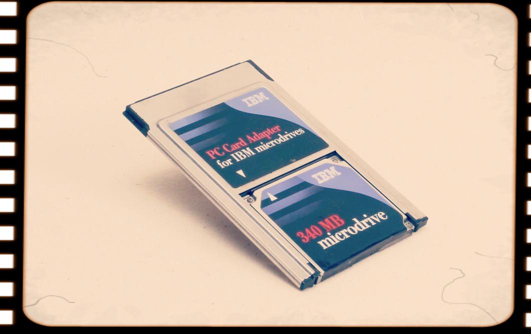2000年前後はPDAやデジカメの普及により、小さくて大容量のメディアが必要とされてきた頃です。そんな時代に登場したのが、小型HDDの「マイクロドライブ」。
